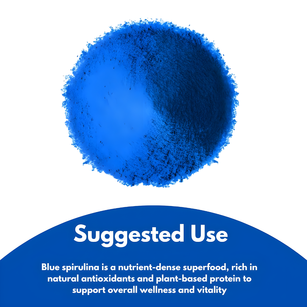 Experience the brilliance of nature with our Organic Blue Spirulina Powder, a concentrated form of phycocyanin, the antioxidant-rich compound extracted from blue-green algae. Known for its stunning blue hue and clean nutritional profile, it’s a must-have for health-conscious individuals and creative home chefs. Say goodbye to artificial dyes! Our blue spirulina delivers a bold, vibrant blue color perfect for smoothies, smoothie bowls, lattes, yogurt, lemonade, desserts, and baked goods. A small amount adds a beautiful pop of color and a mild, neutral taste—with no fishy smell or aftertaste.
