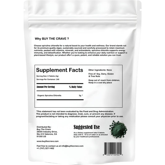 Organic Chlorella Spirulina Tablets, 3000mg Per Serving, 1440 Tablets, Only 1 Ingredient, 50/50 Blend Super Food, Highest Grade Chlorella Spirulina, High Protein & Chlorophyll