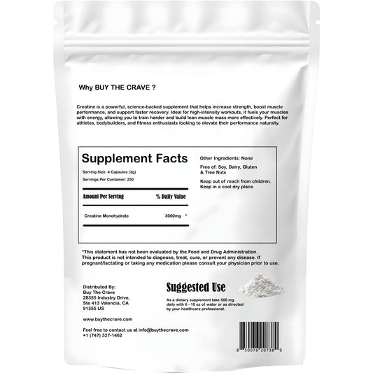Micronized Creatine Monohydrate 1000 Capsules, 250 Servings, 750mg of Creatine Monohydrate Per Capsule, 3000mg Per Serving